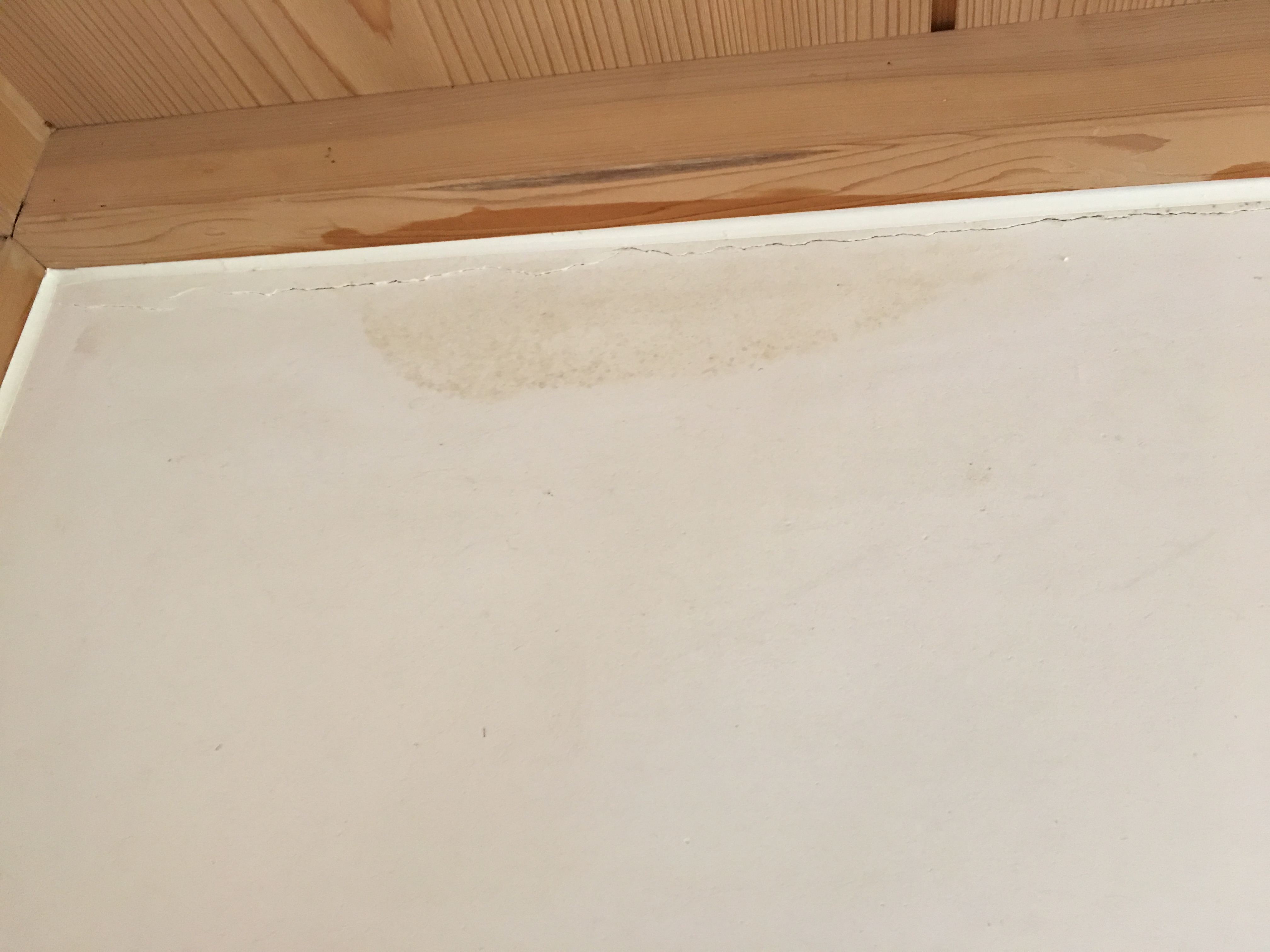 本日のカビ処理は、雨漏りによって漆喰の壁にできたカビでした。